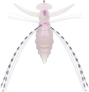 An exceptional topwater bait, made from elastomer for ultra durability and buoyancy. A unique large tail design with a rear inserted weight shifts the center of gravity to the back of the bait, allowing for longer casts. Designed with hollow rubber arms for unbeatable twitching action, an ultra-sharp #2 Decoy hook and a translucent weed guard to keep tangles and snags to a minimum.