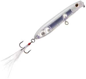 Small bait with ultimate long casting ability & walking action. Predators can’t resist the outstanding surface action emitted by the SB-77.7.The inside of the bill powerfully pushes the water forward, continuously producing bubbly spit. The outside slaps the water sideways every time its neck moves. It features continuous water movement inside and out while in action. The fat tail design applies the right amount of flotation to the weight that’s concentrated in the back. A near-horizontal floating position and gravity center in the back creates superior action response and generates continuous quick turns within a short moving distance. The heaviest tungsten ball is placed in the back of the body. This produces remarkable casting distance. Weight concentrated in the back means the lure is less likely to bounce off of and more likely to hook the bass. The low rumble of the tungsten ball and the high timbre of the steel ball create a piercing rattle that appeals to and attracts fish across a wide expanse. The feathers help support light and short bites. By creating resistance, feather hooks add sharpness to quick turn actions.