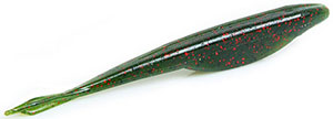 The Yamamoto D-Shad is a new breed of soft plastic jerk bait. It has a streamlined body designed to give that side-to-side twitching action, but the tail is thicker and heavier so when you kill the bait it sinks level and gives a little shimmy.