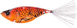 The Dyna Response is a new concept metal vibe developed with Shinji Sato. The super-thin 0.6 mm stainless plate cuts through water and features a carefully sculpted weight shape that generates powerful vibrations and quick start-up action. The weight's hydrodynamic design powers a sharp, high pitch action and kicks into gear instantaneously whether employing lift & fall or more traditional retrieves. The placement of the rear treble and innovative tinsel-tail detail significantly reduce line tangle on slack line and at the end of long casts, in addition to providing an enticingly new flicker-flash to the Dyna Response's vibrating action. With its outsized flash, high-pitch vibration, tangle-fighting tinsel and lightning-quick startup action, the Dyna Response elevates the traditional metal vibe to new heights.