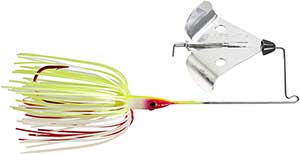 The Bleeding Elite Buzz bait features holes in the blades to create a gurgle type noise and leave a bubble trail on the surface. The exclusive grass cone keeps the blade clear of obstructions. This smaller profile bleeding buzzbait has a true running wire and different blade for a different sound.