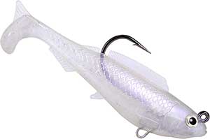 Highly detailed baitfish sculpting and a smartly designed curved paddletail give the HerculeZ Swimbait a naturalistic appearance and swim action. The Herculez' 10X Tough ElaZtech composition means you'll fish this exceptional pre-rigged swimbait for miles and dozens of big bites, long before you wave the white flag. Heavy duty 5/0 or 7/0 Mustad UltraPoint hooks in 4" or 5" bait sizes, respectively, offer an ideal match for big, tough fresh- and saltwater gamefish. Jighead also includes a ventral eyelet for adding a second belly hook. Molded around 3/8-ounce (4") and 5/8-ounce (5") zinc weights, the HerculeZ Swimbait casts toward the horizon and sinks at an optimal rate for a variety of presentations. Swimbait profile features 3D eyes, ultra-detailed fins, gills and anatomy, each hand-painted in popular Z-Man color patterns. Pack Count: 1