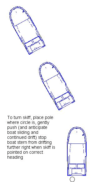 First, let me say there is no better way to approach and catch fish on shallow water flats or in shallow creeks, than to use a push pole, and pole quietly, in a flats boat until you are in casting range. It will amaze you how close you can get to Redfish, bonefish, anything when you are in a quiet skiff and poling it along. I have poled across a flat and had fish literally jump out from under us, all by using a push pole, and being QUIET !! We will not try to give you all the details of poling here, our focus is to help you beginners with the basics to get you poling a skiff effectively enough to catch fish. Poling a skiff across a flat should not intimidate you, it is actually quite easy once you know a few basic concepts. In order to effectively pole a skiff and hold your position a few key pointers will greatly help you understand and learn the basics. Lets get started. Remember, you are propelling the boat from the transom. In order to go in a straight line towards your targeted area, you must first point the boat in the right direction by turning it with the pole, actually pushing or spinning the rear of the boat until it is pointed towards your heading. It is comparable to backing up your car because you are steering from the rear. This concept can be easily demonstrated. Lets do an experiment. Grab a book and put it on the table or desk in front of you. Place a finger on the end of the book, centered left to right, on the edge of the book. This is like the position of your poling platform - the rear center of the boat. Only use one finger and try to push the book in a straight line. Notice how you have to alter the direction slightly in which you push to keep it traveling in a straight line ? Now try a few different things, aim at a spot on the table and pay attention to what you have to do to get it there. As you will see, you must first, turn the book by pushing the rear to line up with your target spot ! Now push the book in a straight line with one finger and gently push on the side with another. While doing this look at what you have to do with the ‘push pole finger’ to keep it going in a straight line or towards your target. You have to adjust the direction of force to compensate for the yaw of the book caused by pushing on its side. The same goes for poling a skiff. But the book exercise will give you an idea as to how your position and the direction you push at the rear of the boat effects how you steer it and where your skiff will be headed. Also try using a pencil to push the book...it makes it even more graphic. First things first. A point I want to make clear, which will make things easier on you while learning is this; when you are poling a skiff remember that your goal is to get to the point you are aiming at, not keeping the boat in a perfectly straight line, in other words the boat may move in the right direction, say south, but it may actually be pointing south-south east, get it ? Look at the drawing. The wind and tide will make the boat ‘crab’ along in a yawed or crooked position as you are poling. This is important as if you are poling a flats boat cross wind and trying to keep the boat ‘pointed’ in the right direction, you will most likely be headed in the wrong direction. Look at the illustration, your boat is pointed at ‘A’ but your poling towards ‘B’. There is nothing you can do about this, except get used to it. This is only the case when the wind or current is yawing or turning the boat. In calm conditions you should be able to push your boat in a straight line and keep it pointed in the same direction. The next point (and a very good one) I would like to make is positioning your push pole. This is very important. Always try to keep your push Pole foot as close to the engine as possible. Imagine a hula-hoop tied to your transom, in the center, dragging behind the boat just past the prop of the engine (with the engine tilted), on the water. This circle is where you should always place your pole in the water and push the foot straight to the bottom. The closer you place the foot of the pole to the transoms center ,the easier it is to pole the boat straight, and travel in the direction you want to. To turn the boat you only need go off center slightly or to the rim of our imaginary hoola-hoop to make quite a snappy turn. The only time you really need to go out of this circle is to do an immediate 180 turn or to stop, or avoid an object, but we wont deal with these topics here. If you concentrate on keeping your pole foot close to the skiff when you place it, you will have come a long way towards proper technique. Now as far as pushing the skiff, TAKE YOUR TIME WHEN LEARNING ! Most people use far to much force when trying to learn and push the skiff all over the place zigzagging, only to get frustrated. When your push pole foot contacts the bottom gently push the boat forward, keeping your pole in line with the center of the boat, remember you must push or apply the force in a line with the center of the boat or where you are headed, otherwise you will push the boats transom off to the left or right pointing the skiff in the wrong direction. Walk your hands down the pole as you apply force, and bingo - off you go ! If you push the skiff and it goes off to one side, pick up the foot and place if a little off center towards the side the transom is moving to get your boat back in line with your target. This is a constant process that you will get used too. Just remember, take it SLOW and easy while you are learning and you will soon master the art of poling your skiff. Just remember to keep the pole behind the skiff in the ‘hoola-hoop- and keep it in straight line with the boats center line....these two hints will help you greatly. One more item I will address. To stop the boat push your foot into the bottom and gently ‘walk your hands down the pole’ pulling it to a stop. this takes a little practice. You can also place the pole up in f