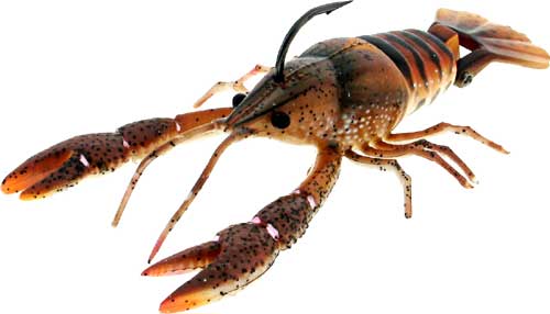 Dahlberg Clackin Crayfish When the folks at River2Sea design a lure, they design it to be an industry benchmark, and with the introduction of their new “Dahlberg Clackin' Crayfish” 130, another industry standard has been set! Today's modern crayfish crank bait may be crayfish colored….. but they don't look like or even swim like an actual crayfish. When legendary angler, T. V. host and lure designer Larry Dahlberg approached River2Sea about making an actual crayfish crank bait that has the actions and mannerisms of a "real" crayfish, they knew bass fishermen every-where would jump on the bandwagon! Not only does it look like a real crayfish in every detail, the Dahlberg Clackin’ Crayfish amazing hinged lip appears to actually grab water and pull the lure forward….. exactly like a real crayfish! During the free fall, it actually sinks like a crayfish as well! You have to see it to believe it. When big bass get a chance to see the Dahlberg Clackin' Crayfish in action, whether on the fall, swimming, or doing the seductive crawl, they too will go crazy! One of the secrets to the Dahlberg Clackin' Crayfish is it's moving body and horizontal tail joint. You know just what it's doing says Dahlberg, because you can feel the tail kick with your rod tip when you accelerate the lure! This crayfish dynamo is 5" long and weights 1oz and comes in 6 different "Actual" crayfish colors. With the help of preeminent crayfish specialists in the US, River2Sea worked on getting these colors right in every detail. They have combined this with a soft plastic head that features reinforced claws that rise up when in the water like River2Sea's popular "Stand’n Yabbie". All of this combines with River2Sea's own 2X strong, black nickel 5/0 "big bite" hook, to make one of this seasons deadliest crank bait combinations. Each lure comes with an additional soft head trailer, making it an exceptional value for the fishermen as well. Anglers who have caught their limit of big fish and wish to replace the soft heads can do so through the replacement 2 pack sold at retailers. In fact, some of the head colors can be replaced with other alike colored tails to make a dizzying array of combinations for their favorite fishing hole! So, you can fish it like a jig, or swim it along the bottom. Fish it on drops, flats or weed lines. Larry Dahlberg suggests you fish it like a "real" crayfish and make it seem during the retrieve, that it's alternately scurrying to escape and stopping to hide on the bottom. Anyway you fish the Dahlberg Clackin' Crayfish, it's sure to get you the double-digit big boy you've been trying to catch and have fun while doing it.